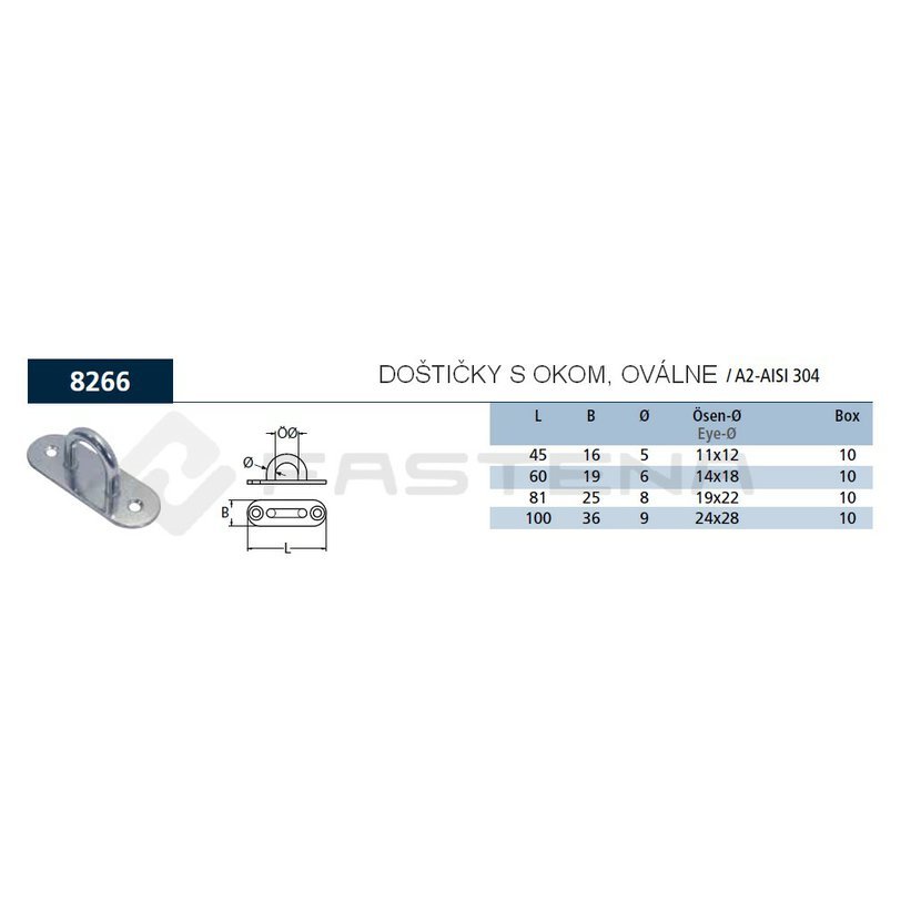 doštička s okom 100 x 36 / 9mm AN 8266/ nerez