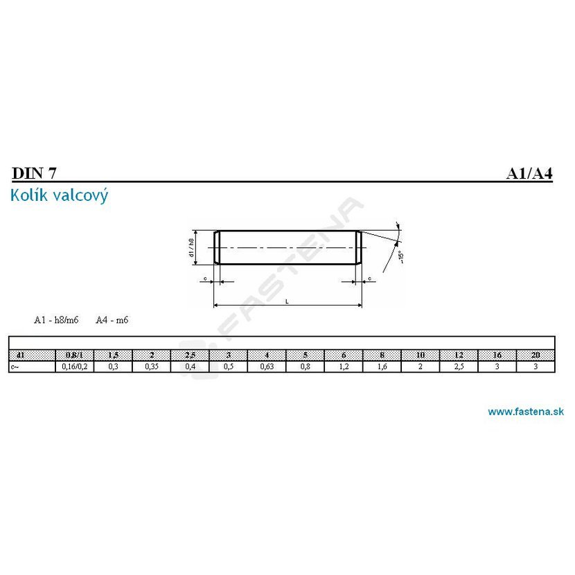 KOLÍKY VALCOVÉ (tolerancia m6) DIN 7/A1