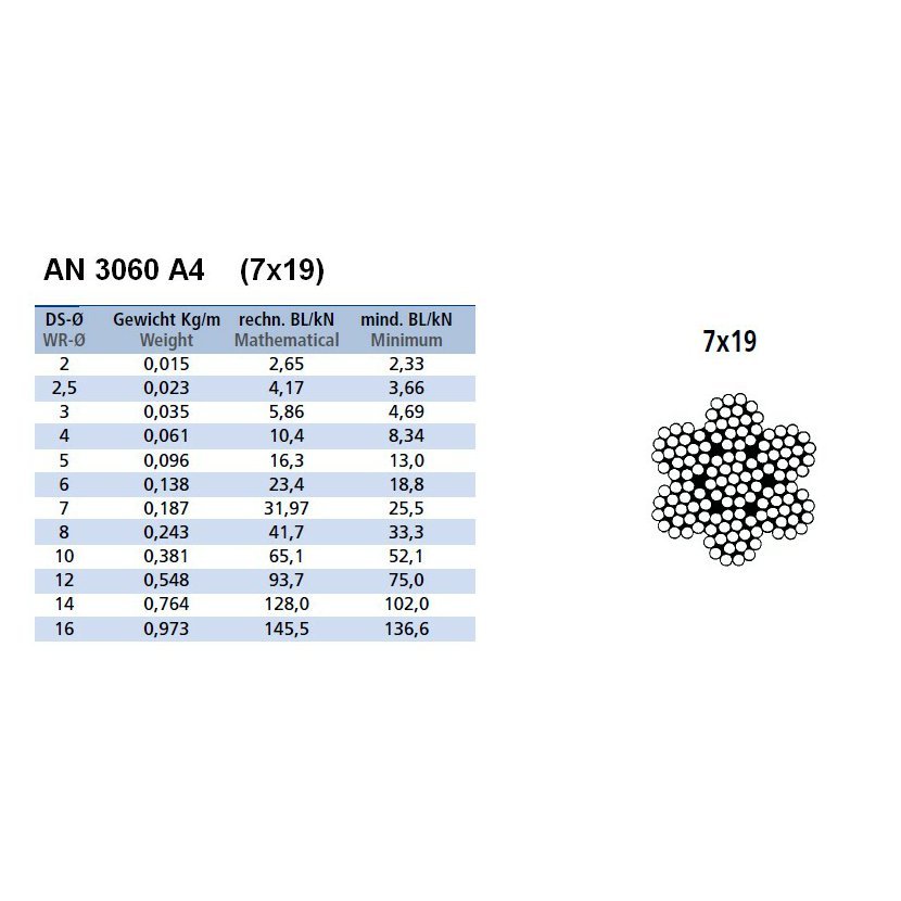 LANÁ NERZEOVÉ (pletenie 7 x 19) DIN 3060/A4