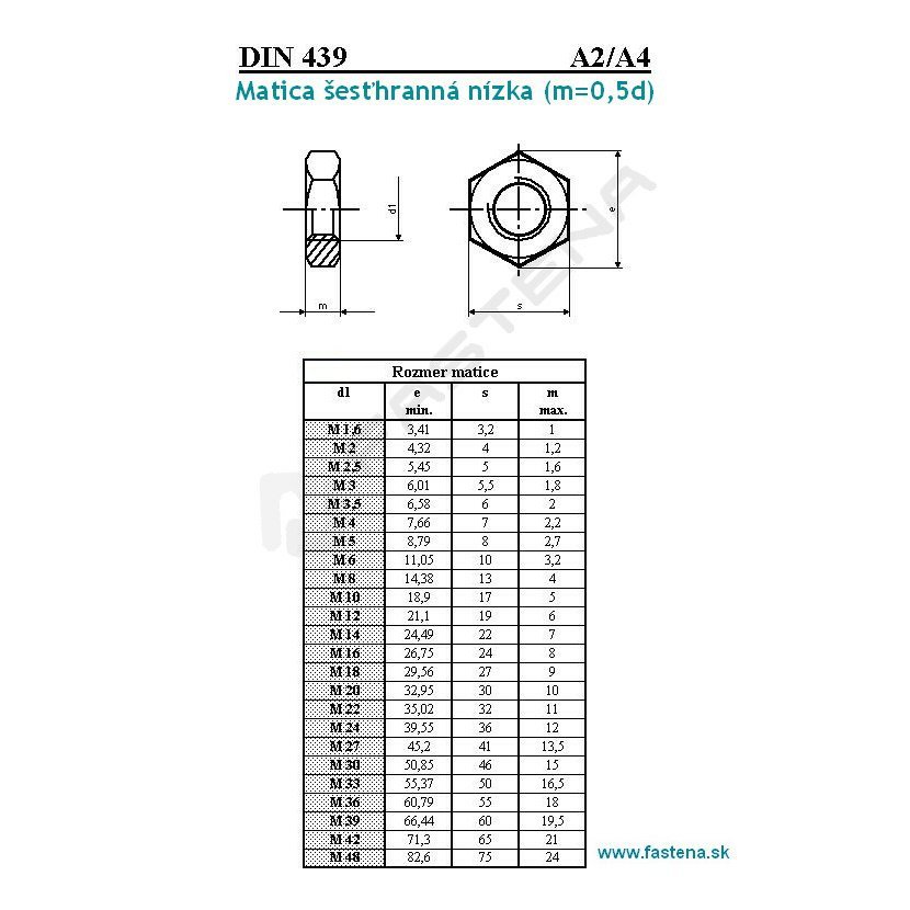 • MATICE ŠESŤHRANNÉ NÍZKÉ (tvar B) DIN 439B/A4