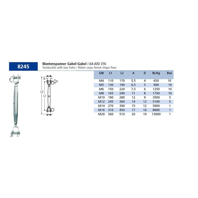 napínák 2 vidlicky M 8,AN 8245/nerez A4