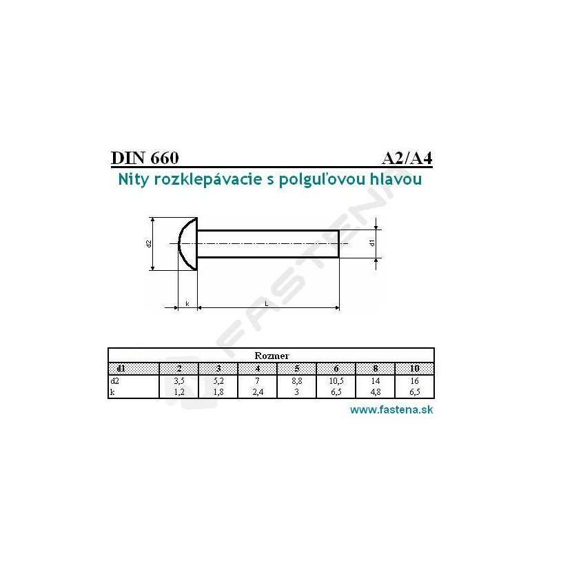 NITY S PULGUĽATOU HLAVOU DIN 660/A4