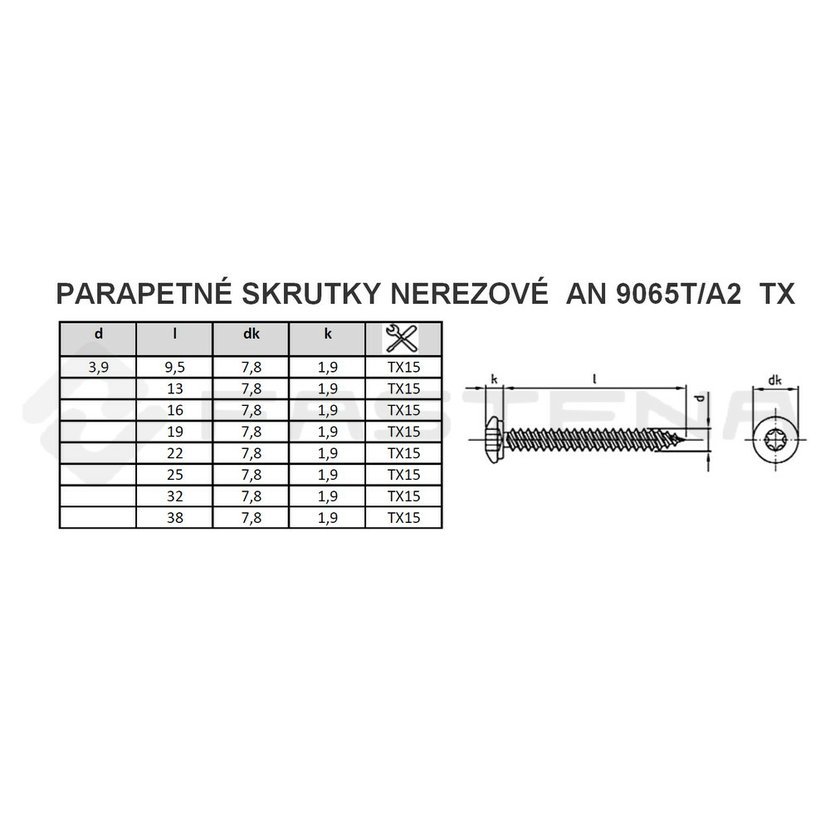 PARAPETNÉ SKRUTKY NEREZOVÉ AN 9065T/A2 TX