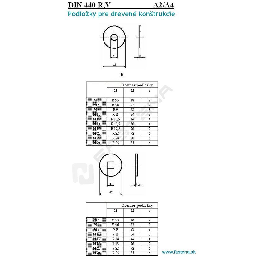 PODLOŽKY PRE DREVENÉ KONŠTR. štvorc.otvor DIN 440