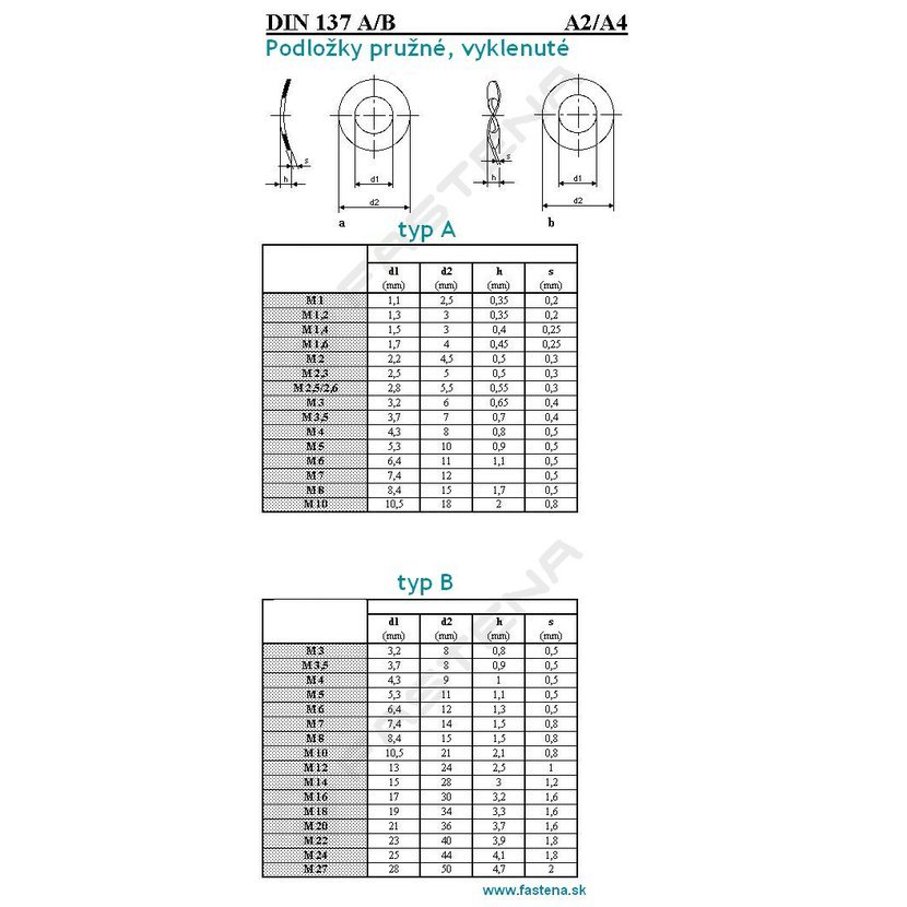 • PODLOŽKY PRUŽNÉ VYKLENUTÉ (tvar A) DIN 137A/A1