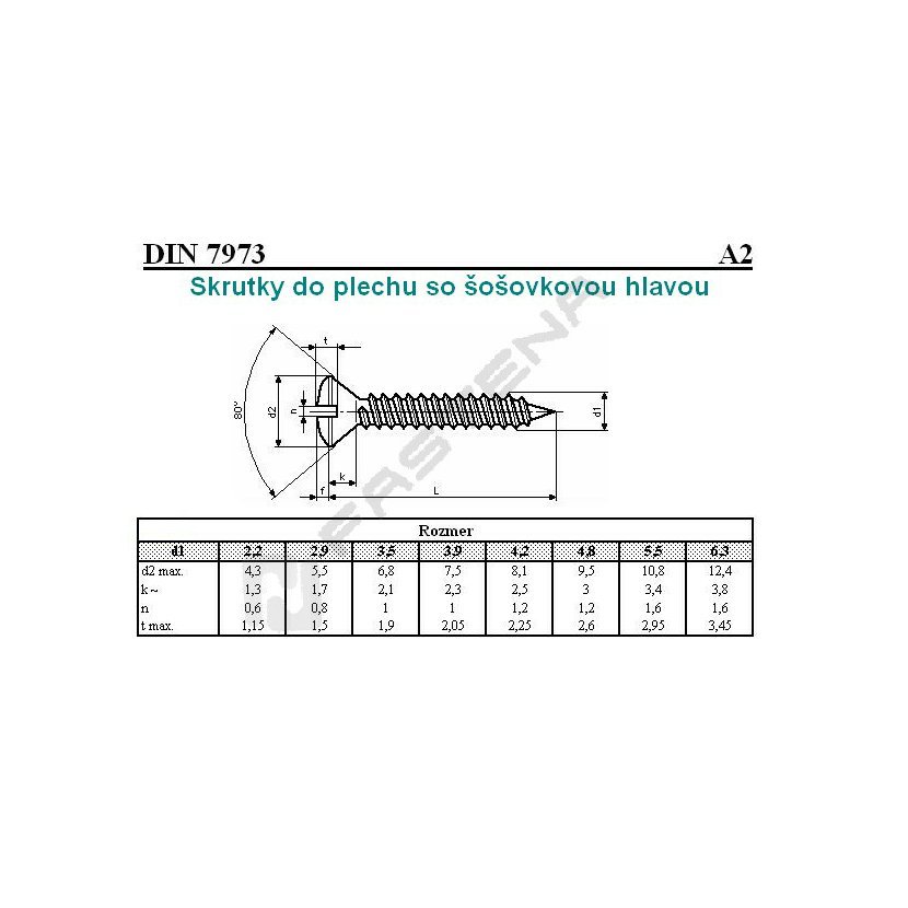 SKRUTKY DO PLECHU SO ŠOŠOVK. HL. DIN 7973/A2