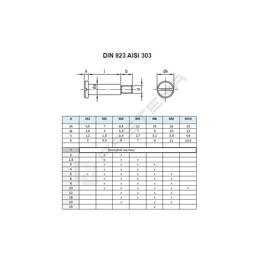 skrutka M 3 x 2,(s plocho.hl.),DIN 923/A1
