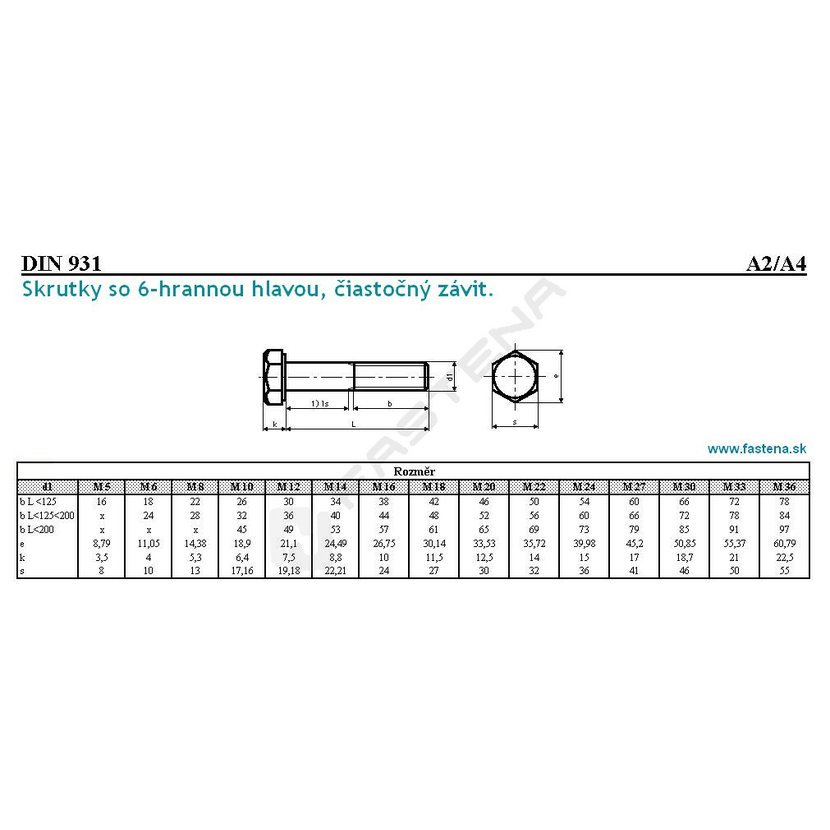 SKRUTKY SO ŠESŤHRAN. HL. S DRIEKOM DIN 931/A4-70