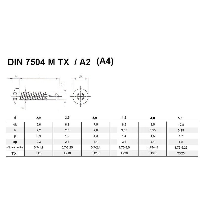 skrutka M 4 x 8,TX,(záv+hvez.),DIN 7500M/A2
