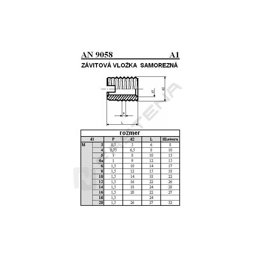 VLOŽKY ZÁVITOVÉ SAMOREZNÉ AN 9058/A2
